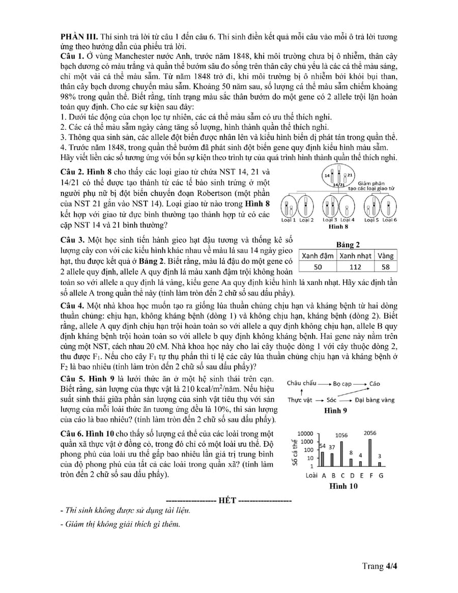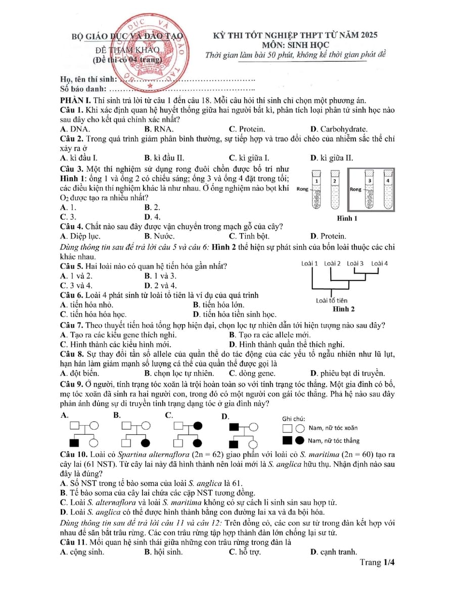 Đề minh hoạ môn sinh học thpt quốc gia 2025