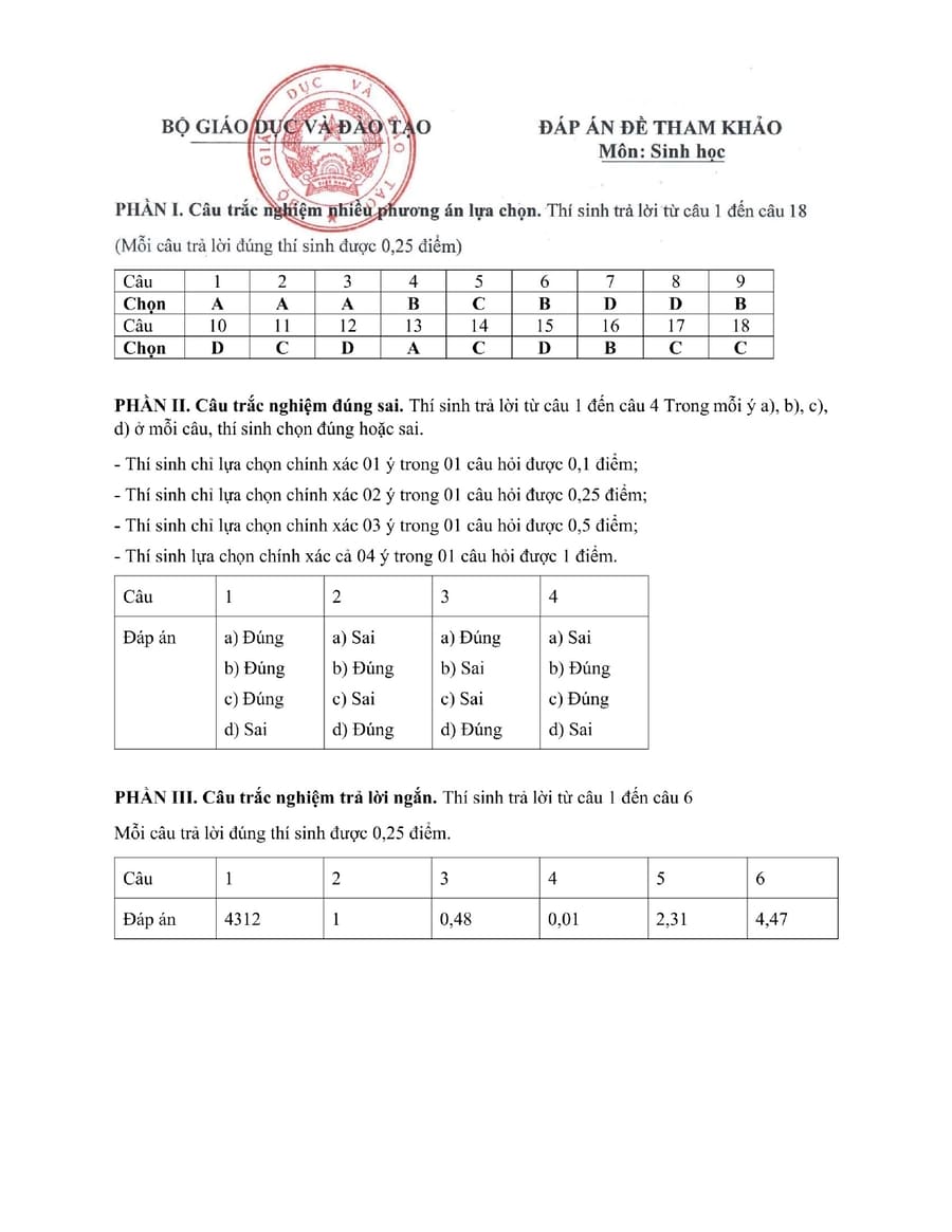 Đề minh hoạ môn sinh học thpt quốc gia 2025 là tài liệu quan trọng giúp học sinh hiểu rõ cách ra đề môn Sinh trong kỳ thi tốt nghiệp THPT. Đề tập trung vào kiến thức sinh học lớp 12 như di truyền, tiến hoá, sinh thái học, đồng thời yêu cầu khả năng đọc hiểu bảng số liệu và phân tích tình huống. Làm quen sớm với đề minh hoạ sẽ giúp học sinh rèn tư duy logic, tránh học vẹt và nâng cao kỹ năng làm bài trắc nghiệm.